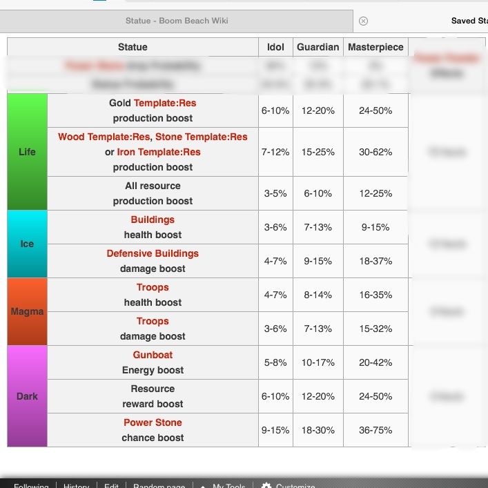 Statue Probability Chart From The Unofficial Boom Beach Guide