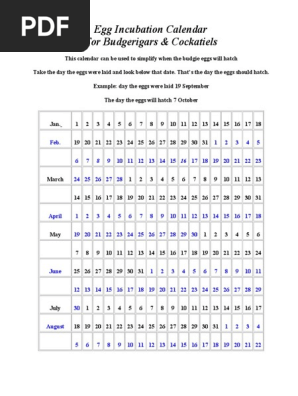 Egg Incubation Calendar For Budgies And Cockatiels Dinosaurs Ethology