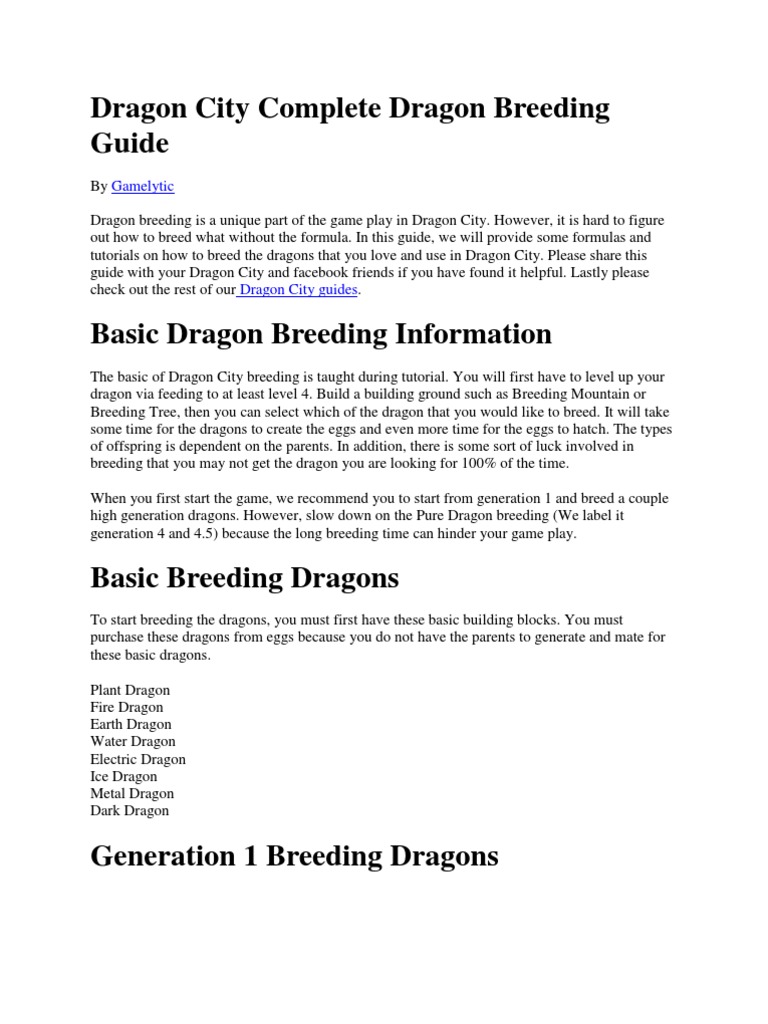 Dragon City Breeding Guide Super Articles