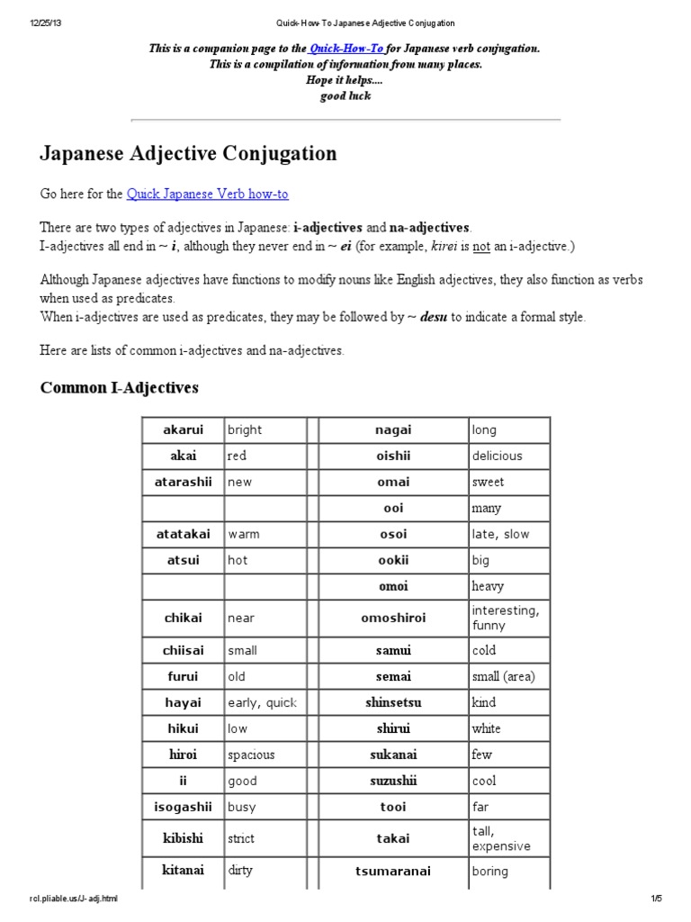 Quick How To Japanese Adjective Conjugation Adjective Syntactic Relationships