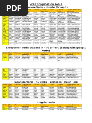 Japanese Verb Forms Chart Pdf Trinity
