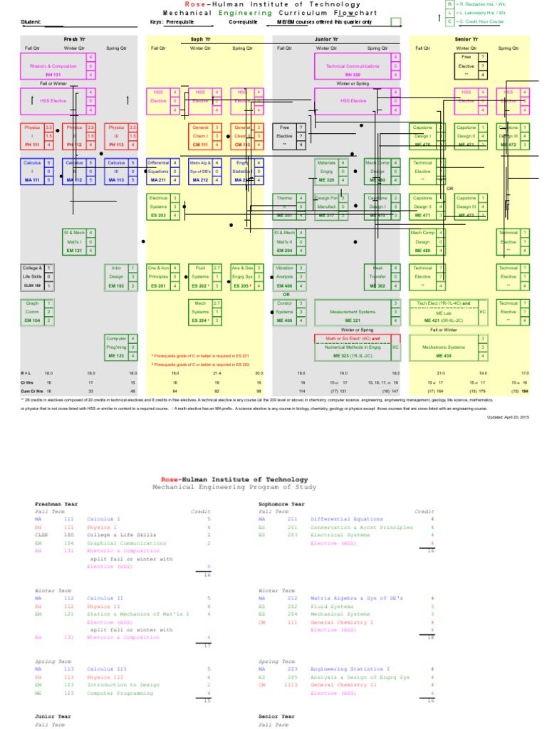 M E B S Curriculum Flowchart Rev 7 8 13 Mechanical Engineering B S Curriculum Effective Spring 2013 First Year Freshman Junior Standing Senior Course Hero