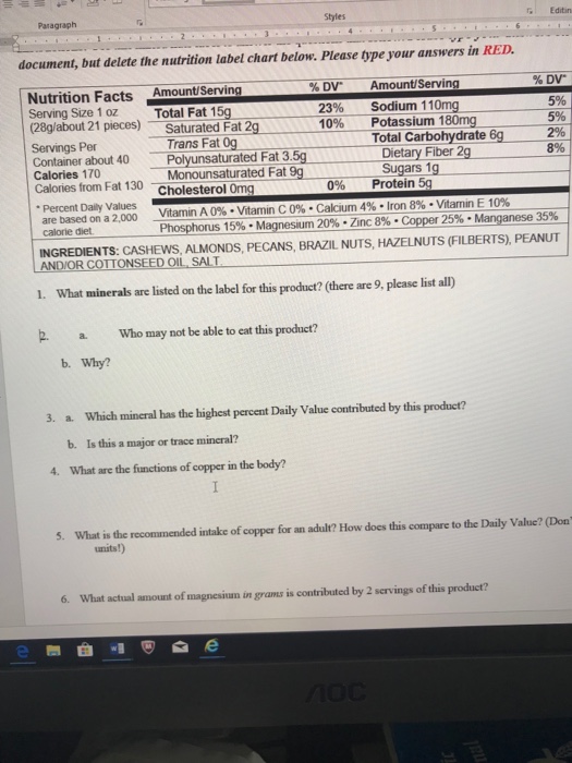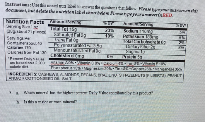 Solved Instructions Use This Mixed Nuts Label To Answer